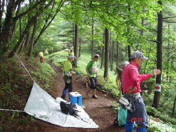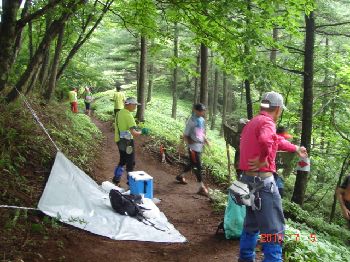 平丸分岐(標高1200m 39km地点)ボランテア参加のスタッフ一同の写真